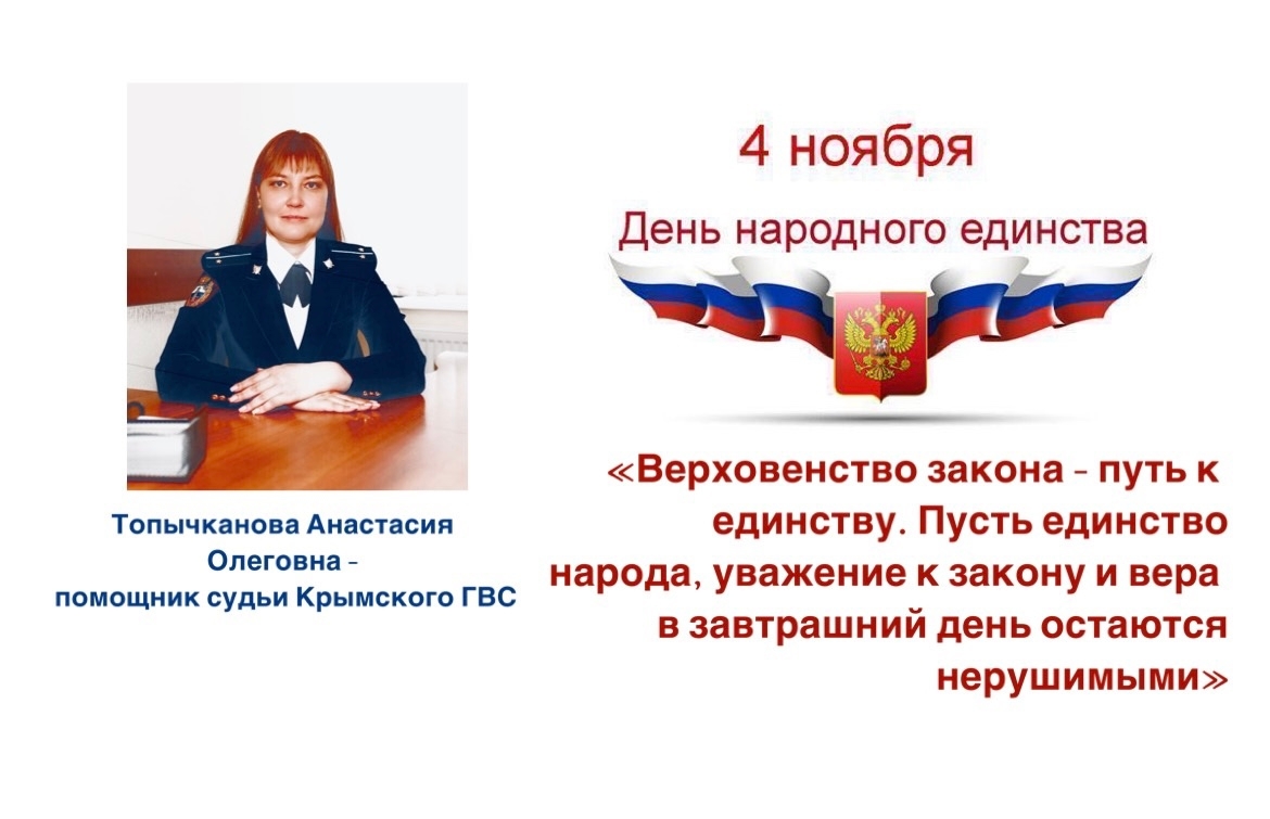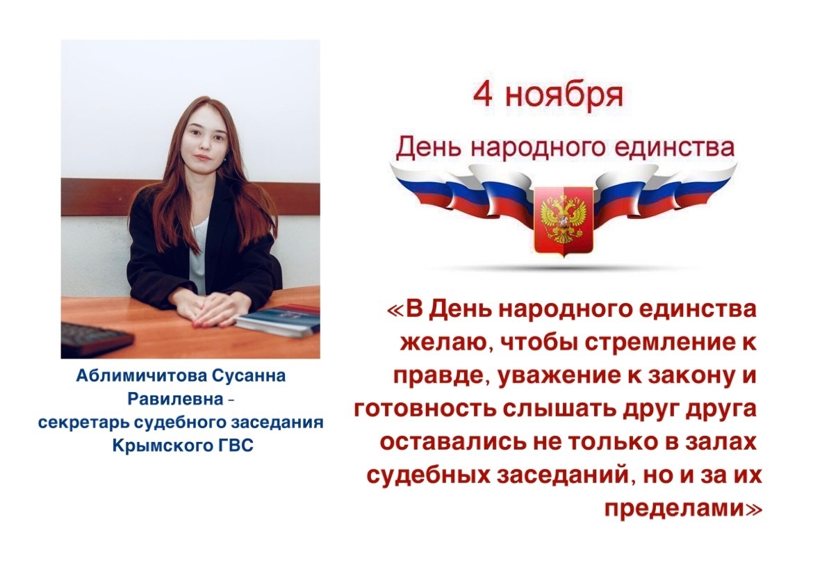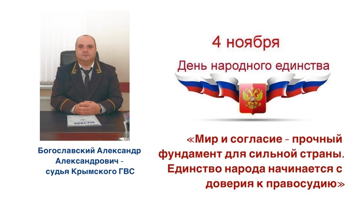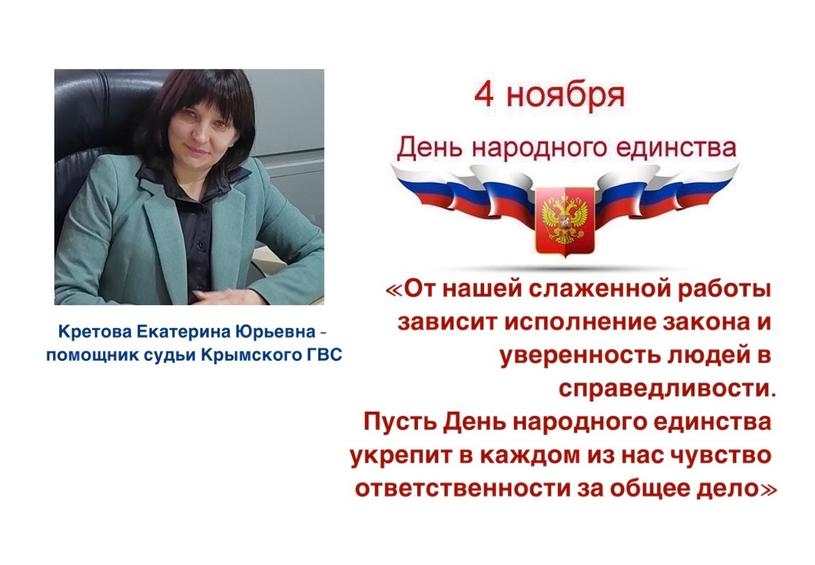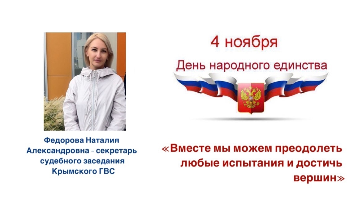В преддверии Дня народного единства судьи и сотрудники аппарата суда делятся личными размышлениями о смысле этого праздника, рассказывают о своей любви к Родине и осознанном выборе – служении Отечеству.