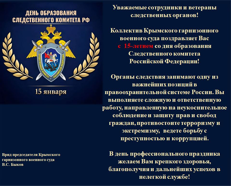 Поздравление с Днем образования Следственного комитета РФверсия для печати